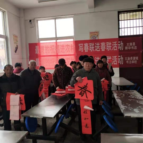 1月22日,在中原出版?zhèn)髅郊瘓F(tuán)公司開展的“最美讀書聲”最美的祝福“七進(jìn)” 活動精神指導(dǎo)下,太康縣新華書店有限公司走進(jìn)太康縣建南社區(qū)開展“書寫春天 溫暖社區(qū)”迎新春活動,為社區(qū)居民寫春聯(lián)、送春聯(lián)。