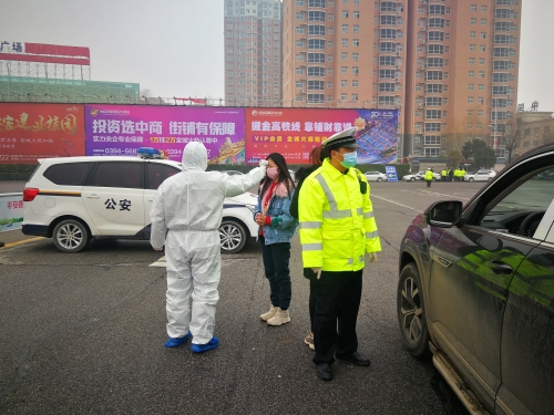 1月27日,寧洛高速沈丘縣收費(fèi)站口,地方交警和醫(yī)護(hù)工作人員正在對(duì)每一臺(tái)下高速的車輛上的司乘人員進(jìn)行體溫測量,檢查行駛證、駕駛證和身份證。目前,周口市境內(nèi)各收費(fèi)站和服務(wù)區(qū)設(shè)立衛(wèi)生檢疫站,配備體檢測溫設(shè)備,對(duì)每一臺(tái)下高速的車輛上的司乘人員進(jìn)行體溫測量,檢查行駛證、駕駛證和身份證。同時(shí),要求各單位每天要對(duì)設(shè)施和停靠交通工具消毒,室內(nèi)要保持通風(fēng)。