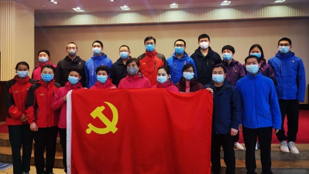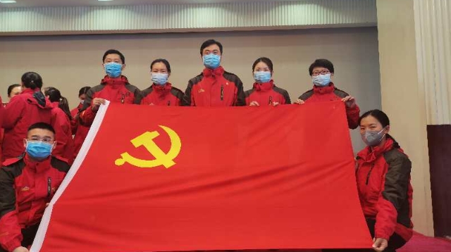 3月19日,周口援鄂醫(yī)療隊周口市中心醫(yī)院祁文麗、徐貴琴、解玉東、王亞麗、王玉才、王冰清6名隊員,站在鮮紅的黨旗面前莊嚴宣誓志愿加入中國共產(chǎn)黨。