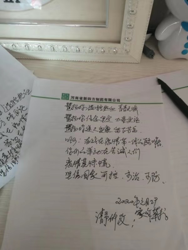 “阻擊疫情的陣容里你默默奉獻(xiàn)著熱和光你舍棄小家 顧著大家 心似蓮花 情滿海洋”1月30日,50多歲愛(ài)好寫(xiě)詩(shī)的周口市民王化民致電記者,為了表達(dá)對(duì)奮戰(zhàn)在疫情一線白衣天使的崇敬,他特意寫(xiě)了一首詩(shī)歌來(lái)禮贊。