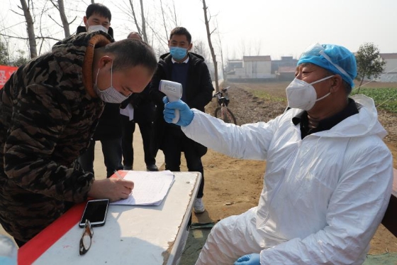 起初,苑統(tǒng)俊配合村干部在村里宣傳疫情防控政策、方法,1月25日,我省啟動一級應(yīng)急響應(yīng),港區(qū)迅速做出響應(yīng),在轄區(qū)內(nèi)各個村莊社區(qū)設(shè)置疫情監(jiān)控點,限制人員流動,全天候監(jiān)測進出人員身體狀態(tài)。苑統(tǒng)俊擔起監(jiān)控點村醫(yī)的職責(zé),負責(zé)該村一至四組的疫情防控。他每天騎電動車前往孫莊村監(jiān)測點值守,為過往人員測量體溫、觀察外地返鄉(xiāng)人員狀態(tài)、登記觀察正處在隔離期的從湖北、武漢返鄉(xiāng)人員體溫數(shù)據(jù),為鄉(xiāng)村干部開展防控工作提供技術(shù)支持。
