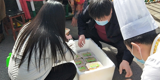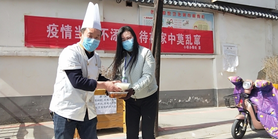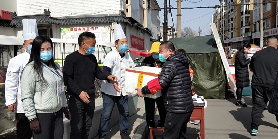 2月22日中午,川匯區(qū)小橋辦事處高莊社區(qū)疫情防控值勤卡點迎來盛世宴賓樓的大廚們,他們帶著熱騰騰的午餐前來慰問值勤人員,為抗疫一線工作者改善伙食。盛世宴賓樓負(fù)責(zé)人智廣旭告訴記者,社區(qū)疫情防控工作緊張忙碌,他好幾次看到值勤卡點的工作人員用方便面對付一日三餐,心里很感動也很難受,所以飯店決定在疫情結(jié)束之前連續(xù)贈送午餐晚餐,“讓社區(qū)卡點的同志吃好點”。