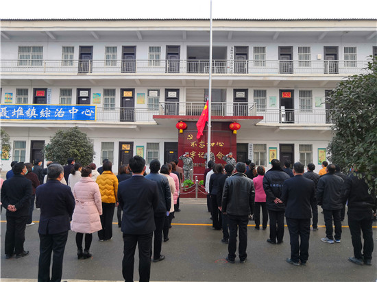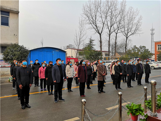 按照疫情防控復(fù)產(chǎn)復(fù)工工作安排,2月24日為恢復(fù)上班的第一天。8時(shí)許,西華縣聶堆鎮(zhèn)政府全體干部衣冠莊重、佩戴口罩、按照間隔1.5米的距離整齊地站在國旗臺前共同舉行隆重的升國旗儀式,以一種不一樣的方式打開新的工作局面。