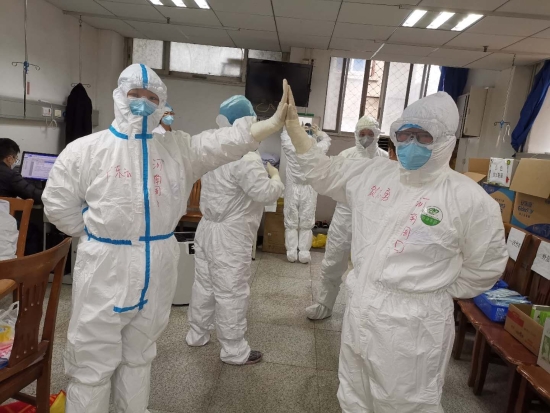賀志勇說:“因為從2月14日起,港區(qū)醫(yī)院就開始對援鄂醫(yī)療隊員展開了培訓,經過這段時間的準備,醫(yī)療隊對三級防護的工作流程已經比較熟練,所以能夠很快進入工作角色?!庇捎谖錆h新冠肺長期以來缺乏醫(yī)護人員,訓練有素的港區(qū)醫(yī)療隊快速進駐,為病區(qū)帶來新的氣象,醫(yī)療隊員們根據(jù)國家衛(wèi)建委發(fā)布的新冠肺炎第七版診療方案,對患者們進行診治的同時,實時認真觀察他們病情變化,了解他們的需求,為患者排憂解難。賀志勇告訴記者,港區(qū)醫(yī)院醫(yī)療隊進入病區(qū)后,很快就取得了患者們的信任,患者們說,從來沒見過像河南隊一樣,業(yè)務能力好、對患者又這么親切的。