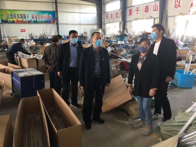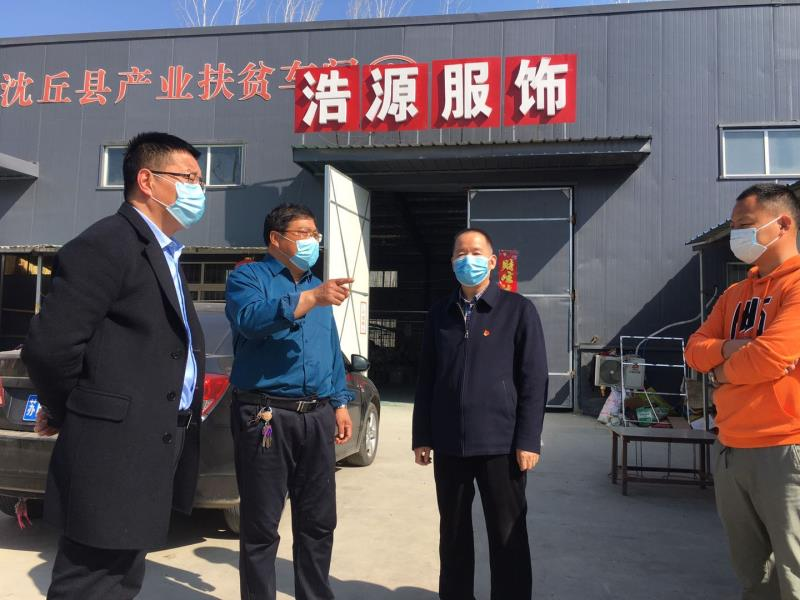 為貫徹落實上級檢察機關疫情防控期間積極服務保障復工復產的有關精神,保障疫情防控與脫貧攻堅工作兩手抓、兩不誤,近日,沈丘縣人民檢察院黨組書記、檢察長李世龍率隊深入到大邢莊鎮(zhèn)宋莊、清涼寺、西李莊三個扶貧車間走訪調研,查看疫情防控措施、復工復產等情況,詳細了解并積極解決企業(yè)復工復產中存在的困難及訴求,向企業(yè)贈送一批口罩、消毒液等防疫物資。