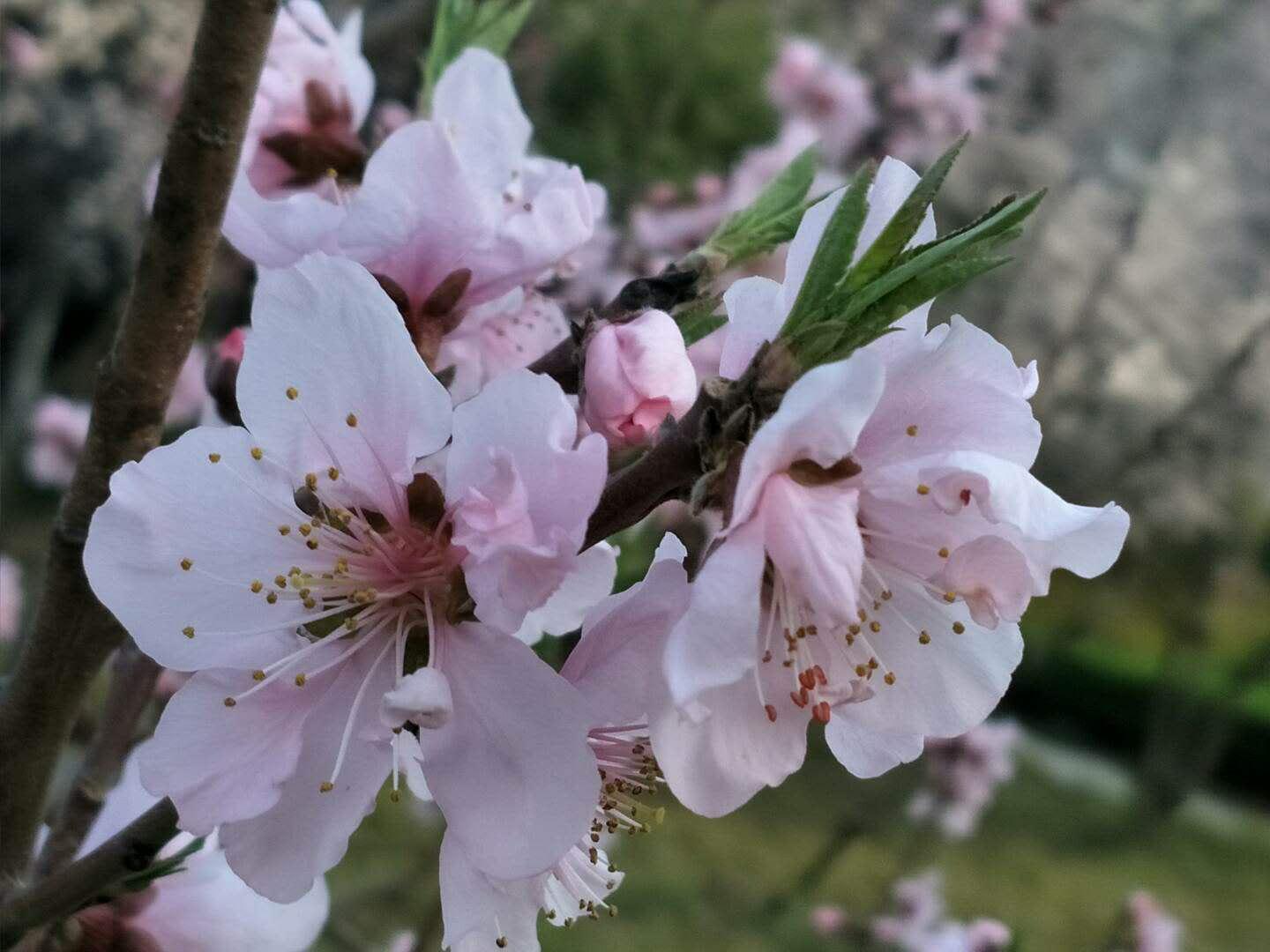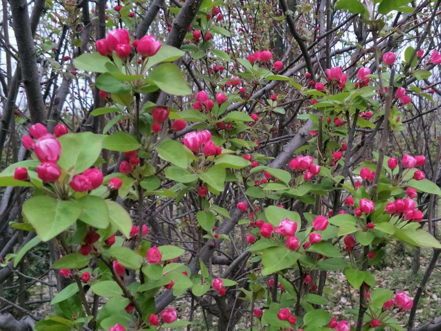 紫葉李、連翹、辛夷花、海棠花、丁香花、棣棠、桃花……都熱熱鬧鬧地開著。