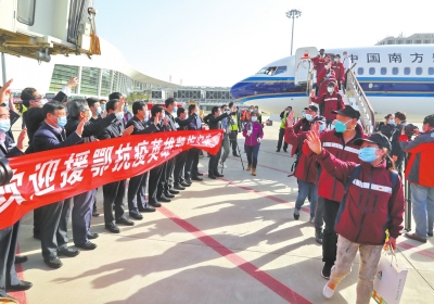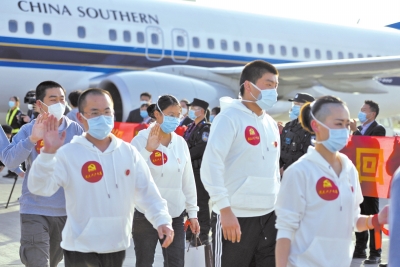 經(jīng)一個多月的艱苦奮戰(zhàn),453名健康勇士圓滿出色地完成了援助工作任務(wù),平平安安、載譽(yù)歸來!省衛(wèi)生健康委闞全程主任等領(lǐng)導(dǎo)到機(jī)場迎接,并轉(zhuǎn)達(dá)省委書記王國生、省長尹弘的親切慰問。