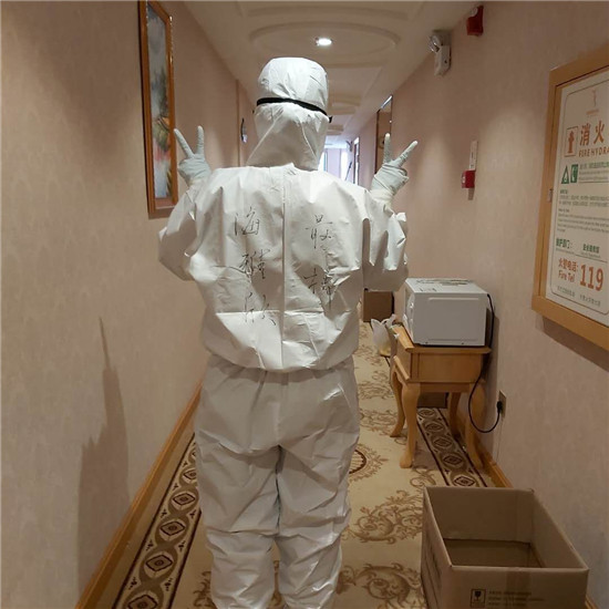 “我是護(hù)士,現(xiàn)在武漢正是最需要醫(yī)護(hù)人員,我要去武漢盡一份力量?!痹谡f服了家人與醫(yī)院領(lǐng)導(dǎo)后,2月17日 海雅欣與北京、海南等地6名志愿者在湖北大悟縣服務(wù)區(qū)聚合,2月18日到武漢東湖高新區(qū) 濱湖社區(qū)衛(wèi)生服務(wù)中心佳園路如家隔離酒店進(jìn)行志愿者服務(wù)。先后參與了東湖高新區(qū)隔離點病人生命體征測量并照 顧病人日常生活需要;濱湖社區(qū)衛(wèi)生服務(wù)中心所屬病人咽拭子核酸檢測采樣;湖北省人民醫(yī)院東院區(qū)發(fā)熱門診患者 信息登記、分流疏導(dǎo)、聯(lián)系病人所屬社區(qū)安排隔離;東湖高新區(qū)發(fā)熱門診閉關(guān)等工作。