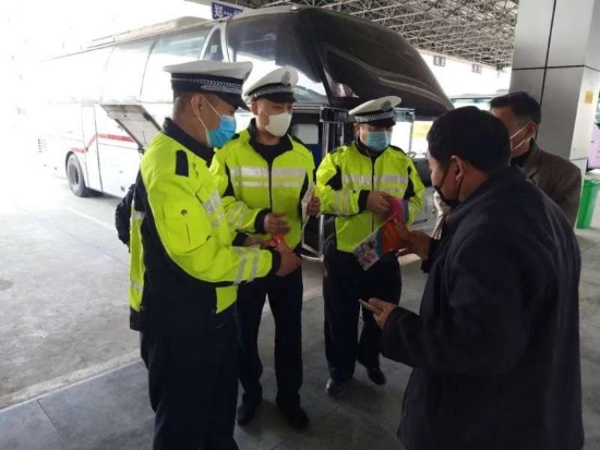 檢查中,民警向客運(yùn)車輛駕駛員、乘客發(fā)放《客運(yùn)企業(yè)疫情防護(hù)知識(shí)》《珍愛(ài)生命安全出行》《致駕駛員的一封信》等交通安全宣傳資料。