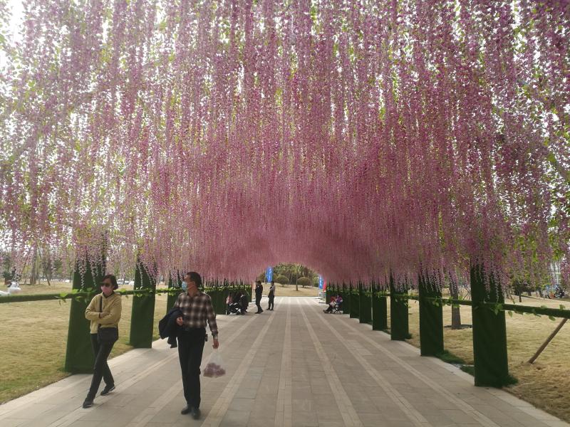受疫情影響,清明小長(zhǎng)假,不少市民放棄了出行計(jì)劃。周口本地的游園、景點(diǎn)因此很是“火了”一把。近年來(lái),周口城市建設(shè)日新月異,踏青賞花,在家門(mén)口就能滿足了。圖為周口某綠色基地節(jié)日?qǐng)鼍啊?記者 李偉 攝