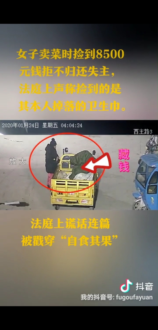 庭審中,面對(duì)監(jiān)控錄像顯示楊某彎腰撿拾錢款的畫面,楊某本人百般抵賴、謊話連篇,拒不承認(rèn)撿到錢款。當(dāng)法官詢問楊某如何解釋監(jiān)控畫面中顯示其撿到了白色包裹時(shí),楊某居然說是彎腰撿東西了,但撿的不是錢,撿的是她自己的衛(wèi)生巾。法官再次向楊某告知當(dāng)事人作虛假陳述的后果及應(yīng)當(dāng)承擔(dān)的法律責(zé)任,楊某仍一口咬定撿到的不是錢,撿的是衛(wèi)生巾。法官遂傳喚現(xiàn)場(chǎng)目擊證人出庭作證,兩名證人依法進(jìn)行了法庭宣誓,明確表示見到了楊某撿起地上一包錢并放入其本人包中的行為。此時(shí),原告又提交了一份錄音證據(jù),法官予以當(dāng)庭播放。錄音清晰顯示,楊某在電話中曾經(jīng)承認(rèn)1月24日早上撿到錢款的行為。