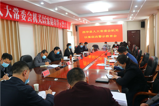 4月16日,西華縣人大常委會(huì)機(jī)關(guān)召開全體人員會(huì)議,開展以案促改警示教育,安排部署脫貧攻堅(jiān)等工作。縣人大常委會(huì)黨組書記、主任周曉燕,副主任趙曉春,黨組成員、副主任王心坎、龐有敬出席。黨組副書記、副主任張國(guó)玉主持。