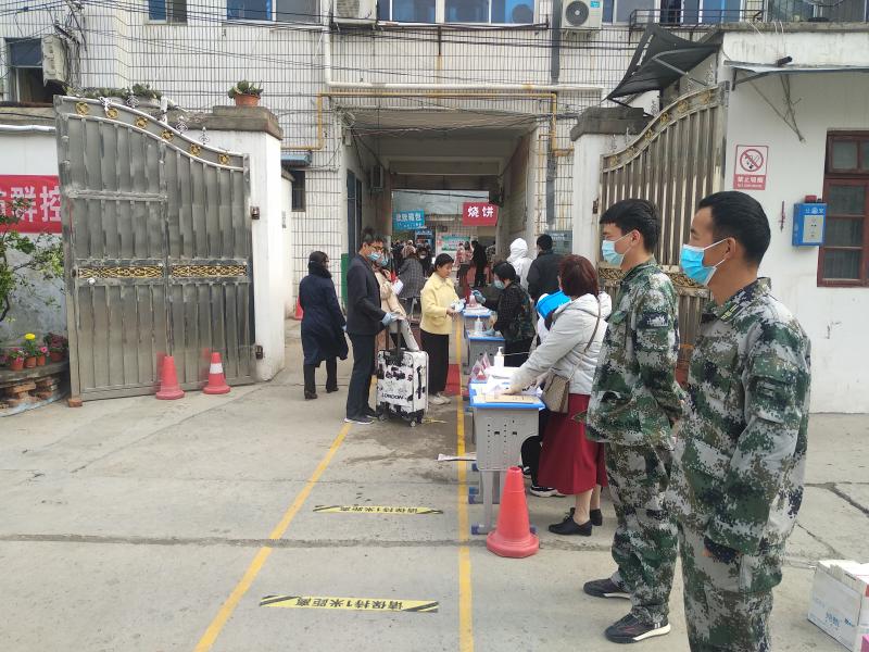 “同學(xué)們,請排好隊(duì),與前面的人保持1米以上的距離?!?月20日上午,在鄲城縣華宇中學(xué),來自洺南街道基干民兵應(yīng)急分隊(duì)的民兵們正在現(xiàn)場維護(hù)秩序,幫助該校做好九年級(jí)學(xué)生復(fù)學(xué)入校防疫工作。