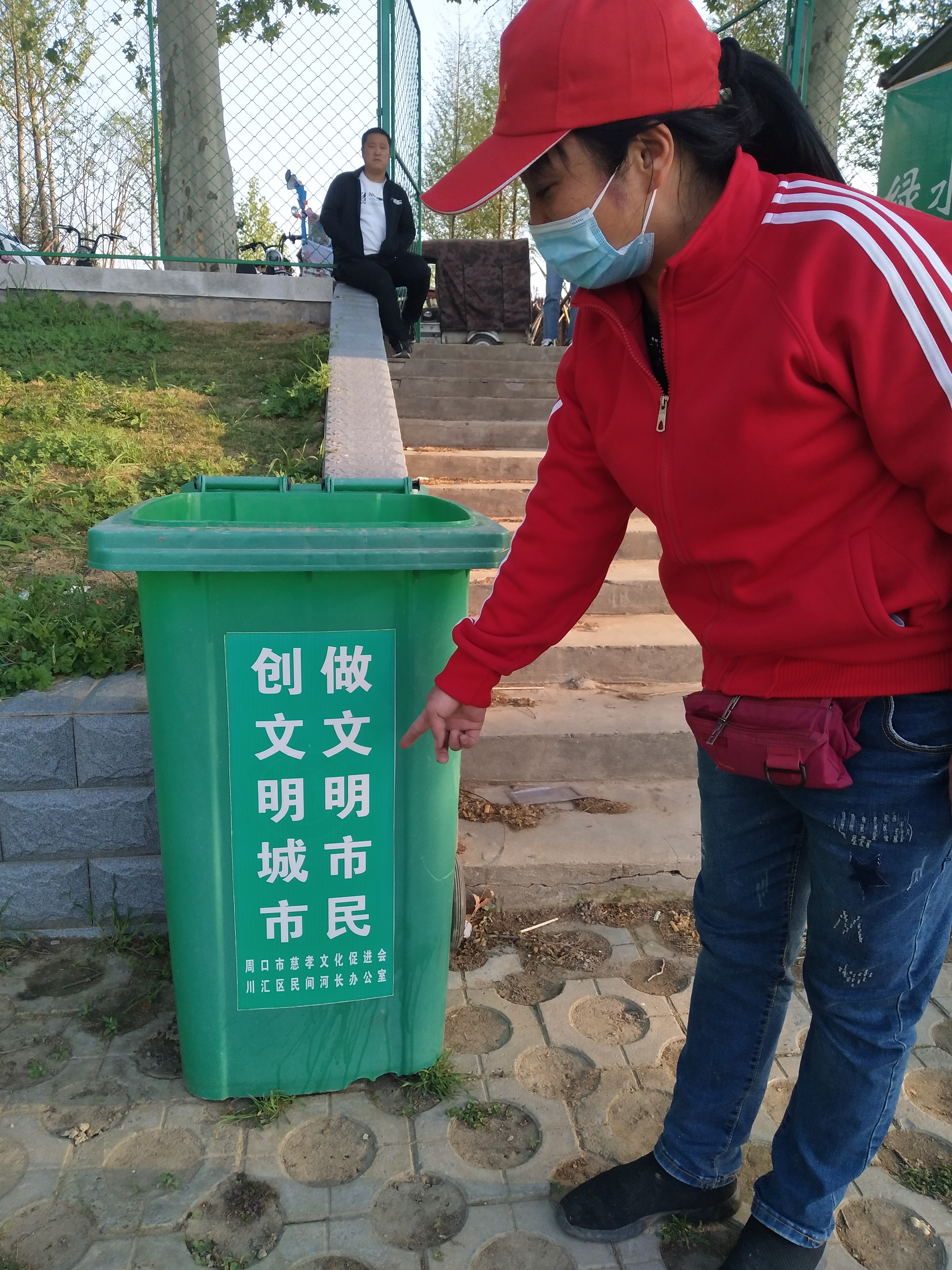 “有些人說我們做的是無用功,清了下游清不了上游。你現(xiàn)在來看看咱們老周口人以前游泳的這一段,以前這塊兒盡是門板,爛木條,還有糞便,經(jīng)過我們長期清理后,你看看現(xiàn)在?!笨看箝l最近的河灘上,水面如鏡,波光粼粼,幾名婦女在洗衣服。孫彩云指了指岸邊擺放的垃圾桶,上面寫著“周口市慈孝文化促進會”、“川匯區(qū)民間河長辦公室”的字樣?!斑@塊兒的垃圾桶是我們捐的,護河成果來之不易,我們要長期維護,影響帶動更多市民自覺愛護母親河。我們相信總有一天沙潁河水會恢復到捧起來就能喝的狀態(tài)!”