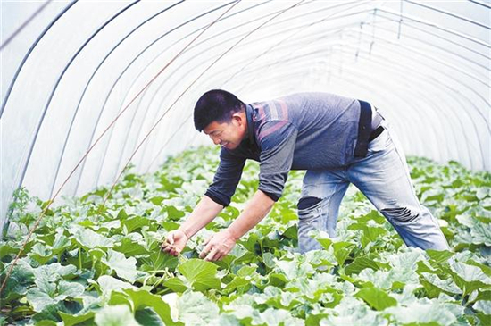 河南省周口市鄲城縣秋渠鄉(xiāng)的大棚甜瓜即將陸續(xù)上市,瓜農正抓緊時間做好田間管護。當?shù)夭捎谩肮?農戶”的經(jīng)營模式,讓村民在瓜棚實現(xiàn)就近就地就業(yè),助力脫貧增收。