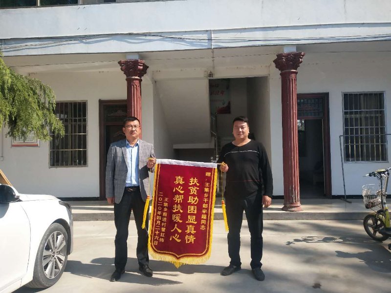 “扶貧助困顯真情,真心幫扶暖人心!”4月26日,太康縣王集鄉(xiāng)前進村未脫貧戶董紅偉將這面錦旗送到幫扶人李超手中。“送上這面錦旗,終于了卻了我的一個心愿,真是非常感謝李超同志,不辭勞苦,多次到我家進行幫扶,這不,又幫我介紹了一份工作,今年我脫貧沒任何問題了!”董紅偉笑著說。