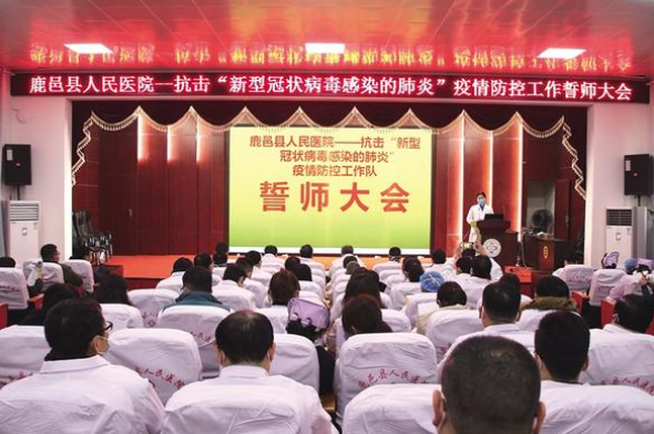 下午4時,老子故里鹿邑縣,縣域醫(yī)療健康服務集團牽頭單位、該縣規(guī)模最大的綜合性二級甲等公立醫(yī)院——縣人民醫(yī)院正在召開新冠肺炎疫情防控工作誓師會。