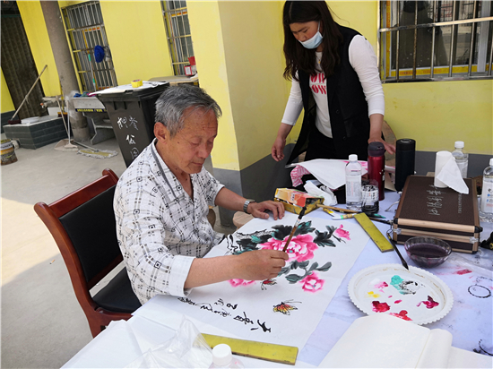 5月4日上午,鄲城縣汲水鄉(xiāng)押嶺行政村村室大院格外熱鬧,幾名書法家正被群眾團團圍住,原來是鄲城縣老年書畫研究會會長曾慶祥帶領(lǐng)書畫名家來押嶺開展送文化下鄉(xiāng)活動。
