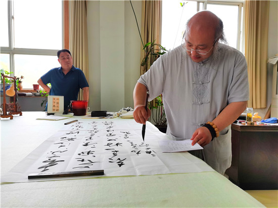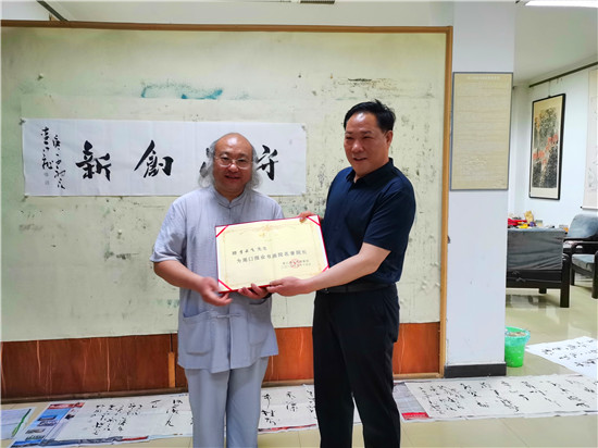 近日,當(dāng)代指書大家李云飛受邀到周口報業(yè)集團(tuán)書畫院進(jìn)行書法交流。交流現(xiàn)場,李云飛揮毫潑墨,創(chuàng)作了多幅書法作品?;顒咏Y(jié)束后,周口報業(yè)集團(tuán)王社長為李云飛頒發(fā)了聘書,聘請李云飛為周口報業(yè)集團(tuán)書畫院名譽(yù)院長。