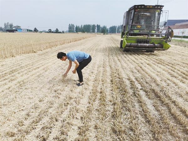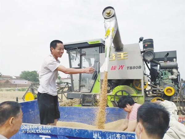 日前,我市小麥相繼進(jìn)入成熟期,田地里一片金黃,滾滾麥浪中收割機(jī)來(lái)回穿梭,農(nóng)民已經(jīng)開(kāi)始收麥了。圖為5月24日上午,沈丘縣李老莊鄉(xiāng)部分麥子開(kāi)始收割,飽滿的麥粒從收割機(jī)中流出,農(nóng)民的臉上綻放出笑容。