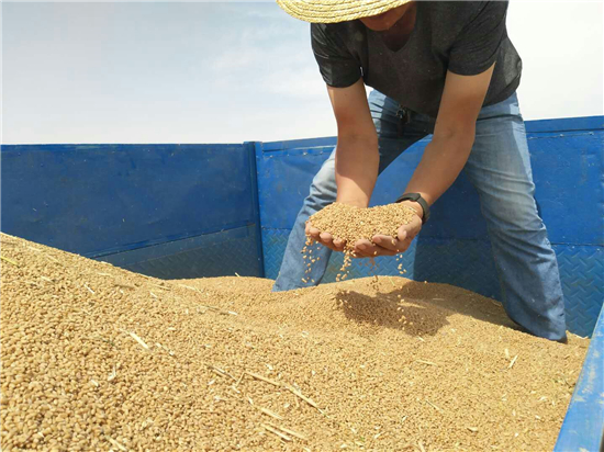 今年3月以來,本報(bào)持續(xù)關(guān)注這種中藥肥料使用效果,并到多塊麥田現(xiàn)場(chǎng)采訪。麥?zhǔn)占?,記者再次來到商水縣,了解經(jīng)中藥肥料噴施小麥的收成情況。