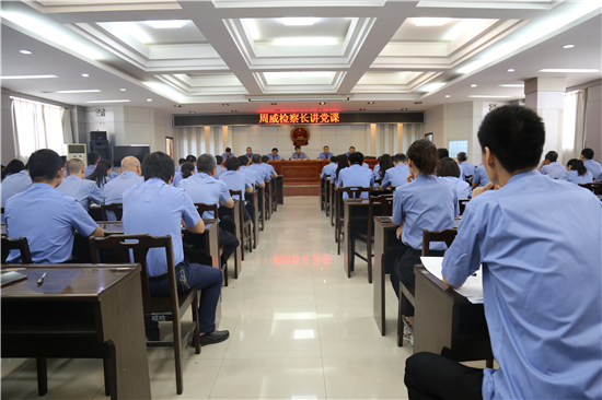 近日,項(xiàng)城市人民檢察院黨組書記、檢察長周威為全院干警講“強(qiáng)化四個(gè)意識(shí),推進(jìn)機(jī)關(guān)黨建上水平”專題黨課。