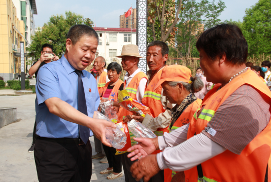 6月18日下午,西華縣檢察院黨組書記、檢察長鄭清朝帶領(lǐng)該院志愿者服務(wù)隊(duì)開展慰問環(huán)衛(wèi)工人志愿者活動,為775名環(huán)衛(wèi)工人送去毛巾、洗衣粉、香皂、水杯、礦泉水等價(jià)值近3萬元的慰問品,以此表達(dá)對普通勞動者最真摯的關(guān)懷。