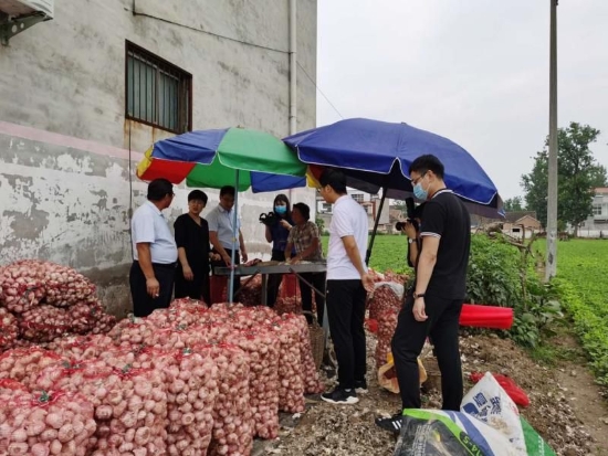 今年以來,受疫情影響,王店鄉(xiāng)劉莊村大蒜豐收后面臨銷售難題和價(jià)格損失。為加強(qiáng)駐村幫扶實(shí)效,淮陽區(qū)市場監(jiān)管局駐王店劉莊工作隊(duì)積極聯(lián)系愛心企業(yè),幫助群眾解決銷售難題。賈飛邀請(qǐng)周口建業(yè)地產(chǎn)團(tuán)隊(duì)到劉莊走訪農(nóng)戶,向他們?cè)敿?xì)介紹了劉莊村大蒜收成、品質(zhì)及銷售情況。