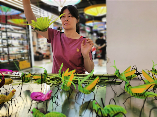 在五一路地下廣場(chǎng),川匯區(qū)的彭彩云手中的幾片嫩綠的棕櫚葉在幾分鐘的時(shí)間內(nèi),就變成了精巧逼真、栩栩如生的小鳥,吸引了不少市民駐足觀看購買。