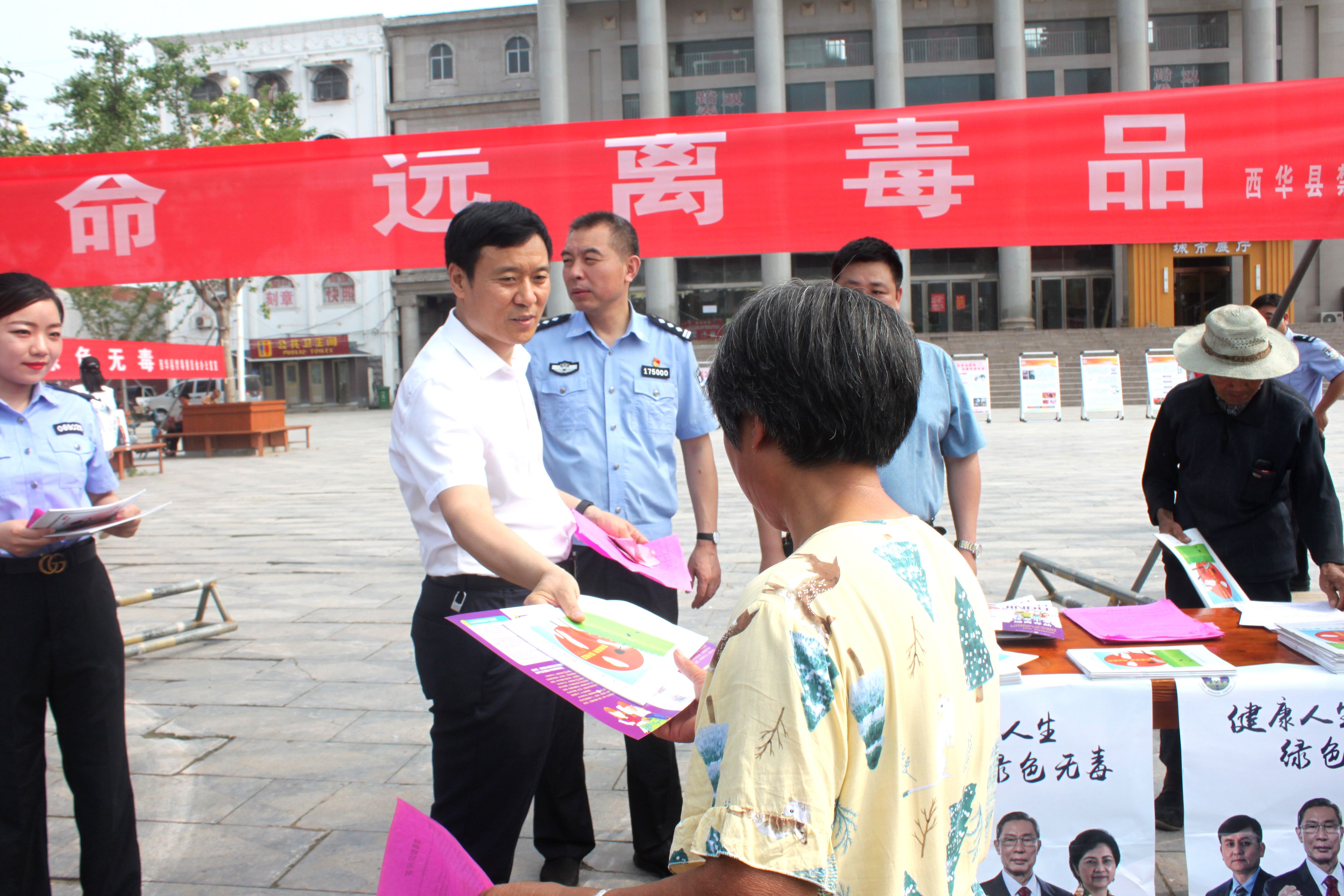 在第33個(gè)“國(guó)際禁毒日”到來(lái)之際,6月24日上午,西華縣禁毒委員會(huì)在縣城女?huà)z廣場(chǎng)組織開(kāi)展了全民禁毒宣傳活動(dòng)。縣委常委、統(tǒng)戰(zhàn)部長(zhǎng)、縣禁毒委第一副主任趙增先出席活動(dòng)。