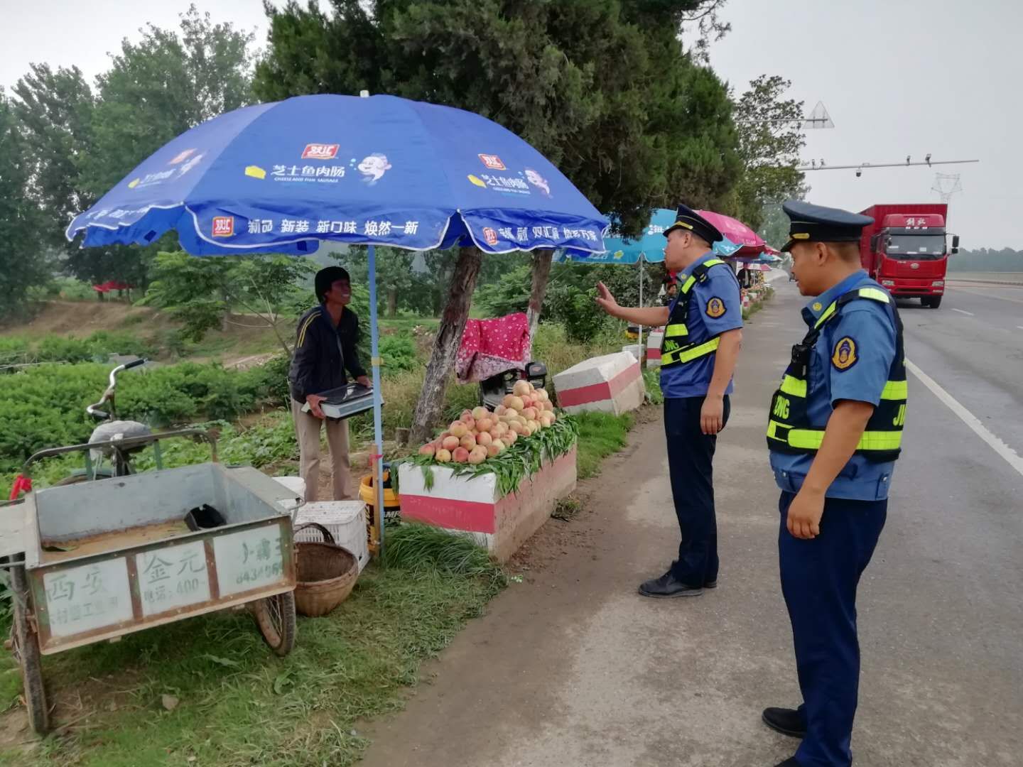 隨著瓜果等農(nóng)產(chǎn)品陸續(xù)上市,龍?jiān)绰犯浇芏啻迕裰苯影压瞎逊旁诠愤吷险嫉澜?jīng)營(yíng),給道路交通帶來(lái)嚴(yán)重的安全隱患。通過(guò)勸導(dǎo)、宣傳教育,提高了沿線經(jīng)營(yíng)戶對(duì)違章占用公路擺攤設(shè)點(diǎn)危害性的認(rèn)識(shí),自覺(jué)將攤點(diǎn)撤離公路至安全地帶,確保了沿線公路的安全暢通。