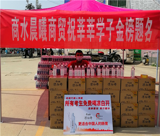 7月7日至8日,高考期間,天氣炎熱。商水縣晨曦商貿(mào)有限公司在商水5個高考考點附近,向?qū)W生及家長免費提供涼白開飲用水。截至8日上午,已發(fā)放涼白開17500瓶,價值35000元。
