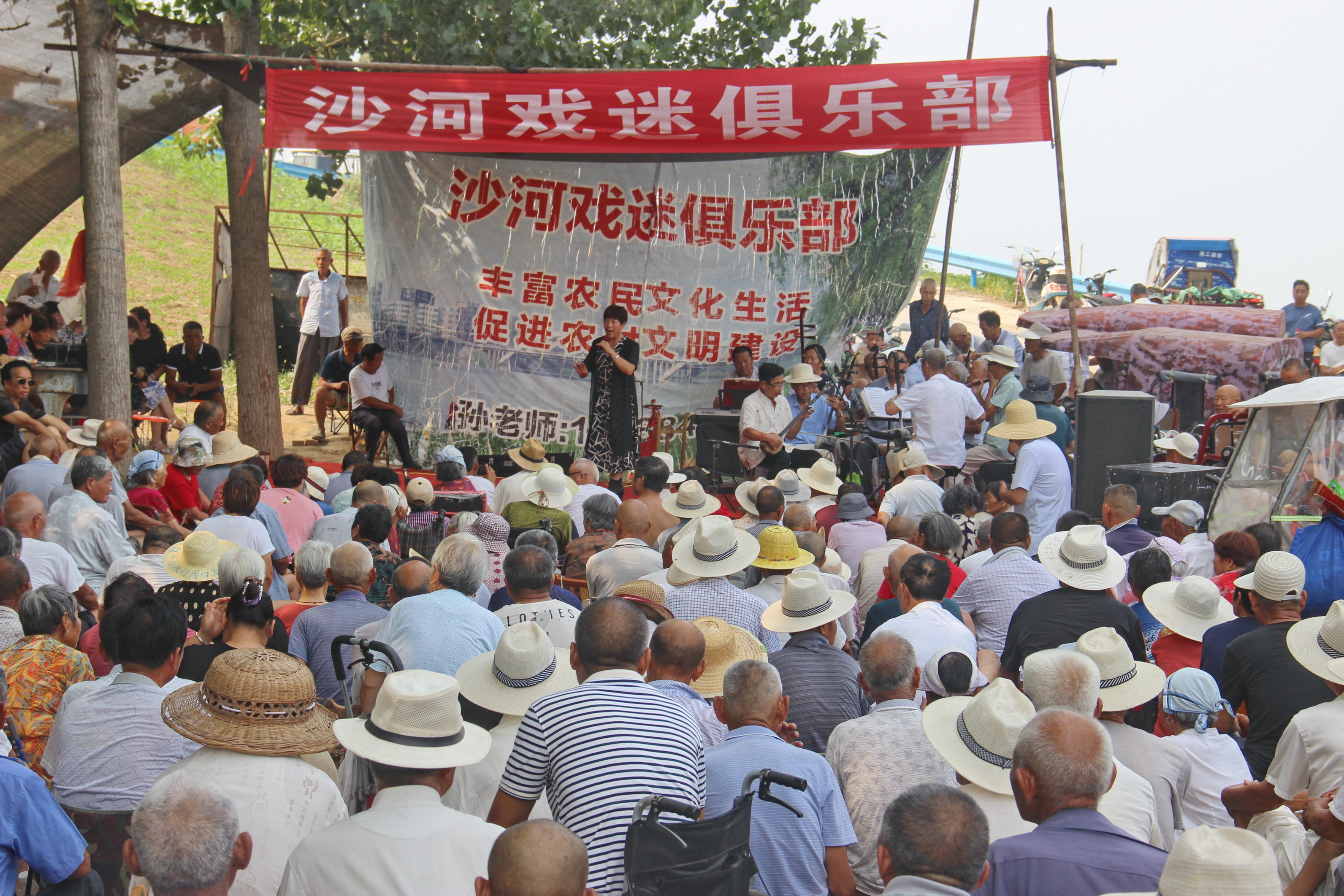 商水縣郝崗鎮(zhèn)大路李村位于漯河郾城、西華、商水三地交界之處,因該村臨近沙河,周邊十多個(gè)鄉(xiāng)鎮(zhèn)的文藝愛好者自發(fā)組建了沙河戲迷俱樂部。該俱樂部每周三、周六在河堤樹林中等地方舉辦兩場(chǎng)戲曲演唱會(huì)。演員來自周邊附近的戲迷愛好者,有唱常派的、閆派的、崔派的、豫東調(diào)的等,后臺(tái)樂隊(duì)也是有民間文藝愛好者自帶樂器免費(fèi)表演,主持人由退休老教師、老干部組成,加上群眾捐款捐物幫助俱樂部添置音響等設(shè)備,目前在郝崗鎮(zhèn)文化部門的指導(dǎo)下該俱樂部已舉辦48期,成為周邊群眾才藝表演的好地方。