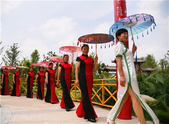 周口森林公園經(jīng)過近年的建設(shè)已經(jīng)成為市區(qū)休閑的一處好去處,風(fēng)景優(yōu)美,園林幽深,目前,盡管森林公園附近道路施工,進(jìn)出還不方便,但是仍吸引著很多居民前去休閑游玩,愛美的大媽們更是在這里秀一把,7月16日上午,來自市區(qū)模特隊(duì)的大媽們,穿著靚麗的旗袍,在荷葉飄香、假山園林秀林深處,開心地進(jìn)行一場(chǎng)模特秀。