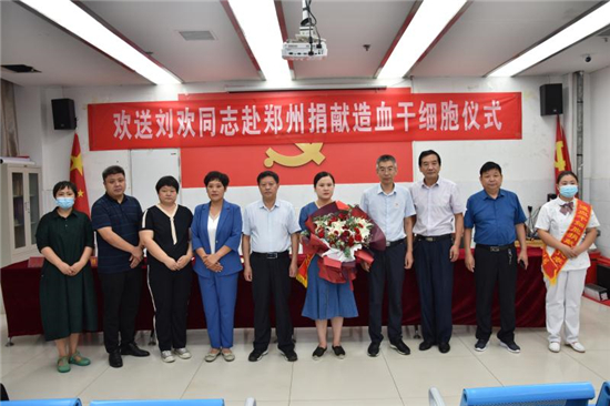 “作為一名醫(yī)務(wù)人員,能為患者帶來生的希望,無論如何我都不會(huì)拒絕。希望捐獻(xiàn)后那位患者能早日康復(fù),投入新生活……” 7月22日上午,在西華縣中醫(yī)院會(huì)議室舉行的劉歡同志赴鄭州捐獻(xiàn)造血干細(xì)胞歡送儀式上,這位來自該院骨科護(hù)士長的一番話贏得現(xiàn)場陣陣掌聲。市紅十字會(huì)常務(wù)副會(huì)長毛立營,市紅十字會(huì)秘書長高春,西華縣委副書記郭峰,西華縣人民政府副縣長、紅十字會(huì)會(huì)長張翠霞,西華縣衛(wèi)健委副主任胡濤,西華縣中醫(yī)院院長高彥博等出席歡送儀式。