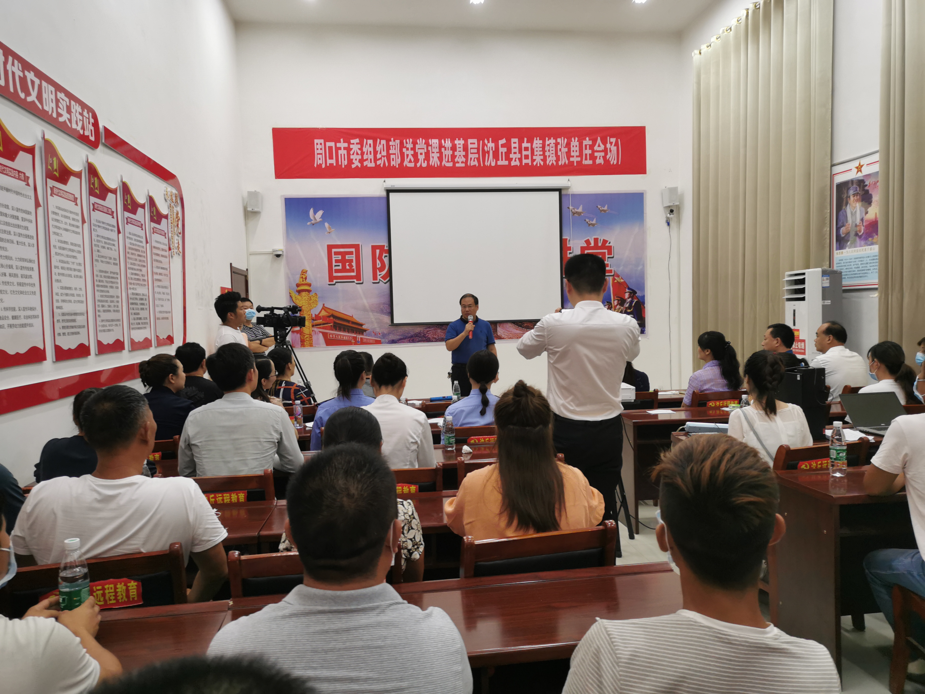 “是黨員就要勇于擔(dān)當(dāng),是黨員疫情面前就要敢于挺身而出……”8月4日下午,沈丘縣白集鎮(zhèn)張單莊村委會(huì)會(huì)議上座無(wú)虛席, 來(lái)自白集鎮(zhèn)政府、張單莊村的120多名黨員干部共同分享著一道“精神大餐”,由周口市委組織部組織的“送黨課下基層”活動(dòng)正在上演。