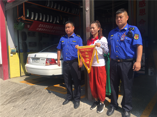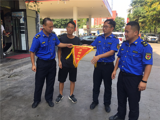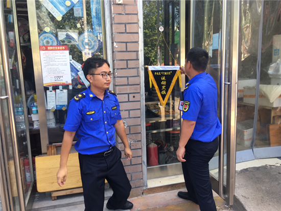 夏日的陽(yáng)光透過(guò)清澈的天空照下來(lái),街很凈,樹很綠。8月18日是開發(fā)區(qū)城管稽查大隊(duì)進(jìn)行“門前三包”流動(dòng)紅旗和流動(dòng)黑旗評(píng)選的日子。開發(fā)區(qū)城管稽查大隊(duì)工作人員根據(jù)綜合評(píng)比標(biāo)準(zhǔn),分別為“門前三包”工作突出的門店懸掛流動(dòng)紅旗,為“門前三包”工作不力的門店懸掛黑旗。