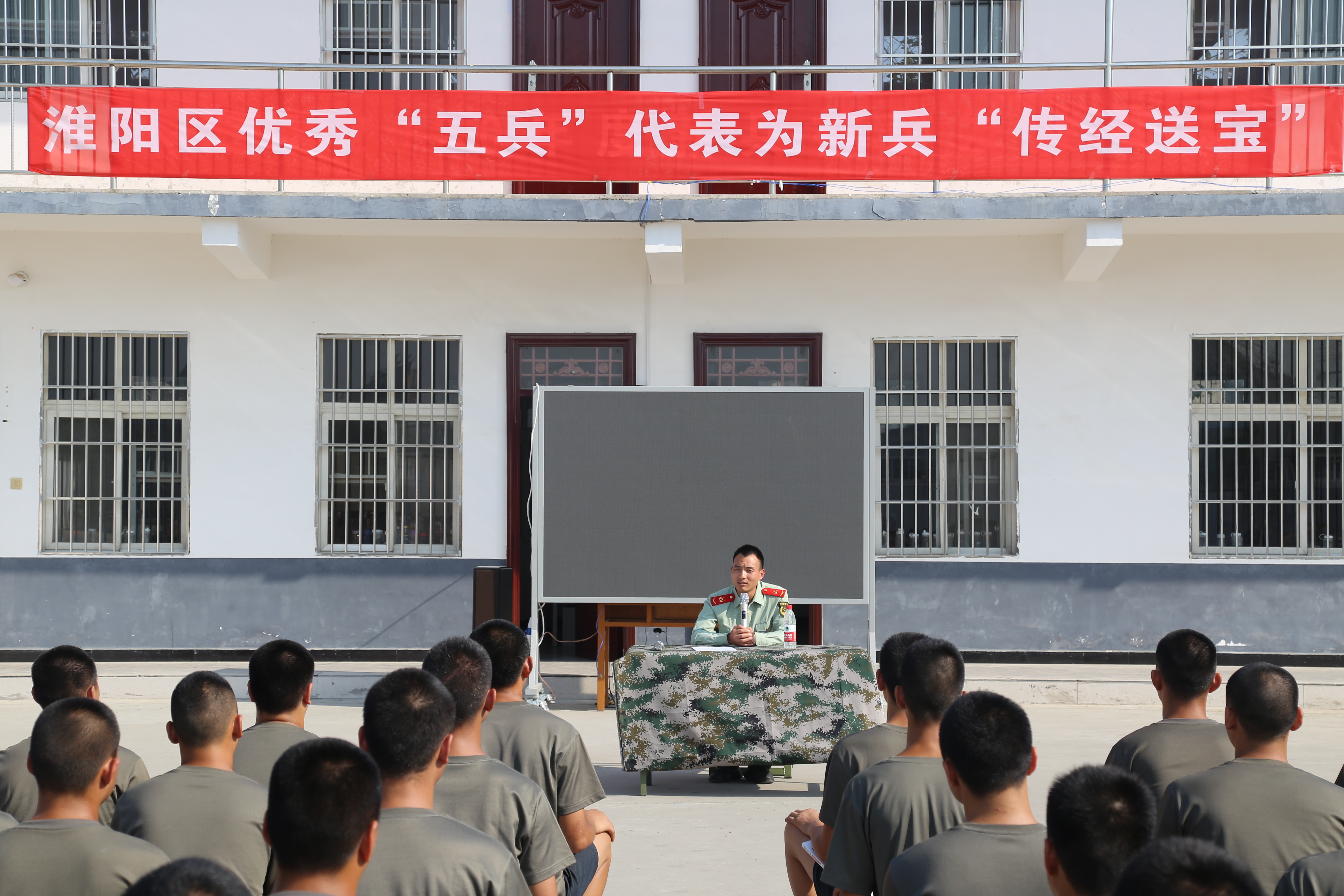 為了進(jìn)一步激發(fā)新兵的工作訓(xùn)練熱情,堅(jiān)定新戰(zhàn)士立足軍營(yíng),獻(xiàn)身國(guó)防的信念。9月8日,在年度新兵即將起運(yùn)之際,淮陽區(qū)人武部組織優(yōu)秀“五兵”代表(參戰(zhàn)老兵、現(xiàn)役士兵、退役士兵)為新兵“傳經(jīng)送寶”活動(dòng),300余名新兵一起聆聽優(yōu)秀“五兵”代表精彩講課。