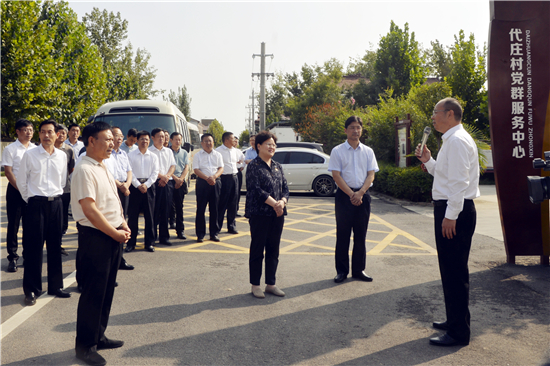 在東壩頭鎮(zhèn)張莊村,考察團沿著習近平總書記的視察足跡,一路走,一路看,詳細了解張莊村美麗鄉(xiāng)村建設、農(nóng)業(yè)產(chǎn)業(yè)布局、鄉(xiāng)村旅游發(fā)展等方面的取得的成果,對張莊村圍繞“一院一景”“記得住鄉(xiāng)愁”的設計理念,充分利用破舊房屋、無人居住房屋、空閑廢地,精心打造特色亮點的做法十分贊賞。每到一個點,考察團成員們聽得認真、討論得也很熱烈,并與該縣有關人員進行細致具體的溝通與交流,認真學習先進經(jīng)驗和典型做法。