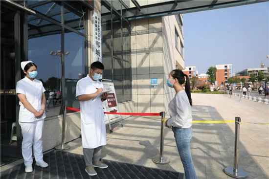 “您好,您哪兒不舒服啊?近期去過疫區(qū)嗎?”鄲城縣第二醫(yī)療健康服務(wù)集團(tuán)鄲城縣中醫(yī)院門診樓前預(yù)檢分診入口處,分診護(hù)士正仔細(xì)詢問一名就診患者?!拔矣悬c(diǎn)發(fā)燒、咳嗽,10天前從某省回來?!狈衷\護(hù)士經(jīng)詳細(xì)詢問其流行病學(xué)史,在做好登記后,護(hù)士為患者更換醫(yī)用外科口罩,并引導(dǎo)患者到發(fā)熱門診......這是9月8日下午,在鄲城縣第二醫(yī)療健康服務(wù)集團(tuán)鄲城縣中醫(yī)院開展的秋冬季新冠肺炎疫情防控應(yīng)急演練的一幕。