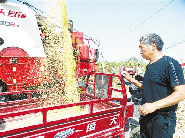 昨日上午,沈丘縣石槽集鄉(xiāng)涂樓村一訂單優(yōu)質(zhì)玉米生產(chǎn)基地內(nèi),村民正忙著機收玉米。連日來,該縣農(nóng)民滿懷豐收的喜悅,利用晴好天氣抓緊搶收玉米,力保秋糧顆粒歸倉。