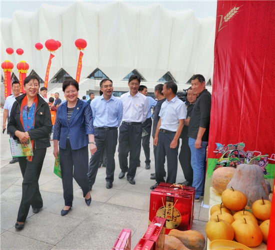 胡旭云在開幕式上致辭。她說,這是77萬扶溝人民分享收獲的盛會,展示了扶溝農(nóng)業(yè)的豐碩成果,她代表省農(nóng)業(yè)農(nóng)村廳向廣大農(nóng)民和奮戰(zhàn)在“三農(nóng)”一線的同志們表示誠摯的問候,對扶溝農(nóng)民豐收節(jié)的隆重舉行表示熱烈的祝賀。扶溝蔬菜種植歷史悠久,種植技術領先,規(guī)模集聚壯大,名優(yōu)產(chǎn)品眾多,蔬菜產(chǎn)業(yè)收入占全縣農(nóng)民人均純收入的37%,扶溝農(nóng)民找到了致富奔小康的金鑰匙。扶溝縣要認真貫徹落實習近平總書記關于“三農(nóng)”工作的重要論述,按照省委書記王國生調(diào)研扶溝講話要求,通過布局區(qū)域化、生產(chǎn)標準化、經(jīng)營規(guī)?;?、發(fā)展產(chǎn)業(yè)化、方式綠色化、產(chǎn)品品牌化,把扶溝蔬菜產(chǎn)業(yè)進一步做大做強做精,打造河南農(nóng)業(yè)的新亮點、河南蔬菜的優(yōu)質(zhì)品牌。