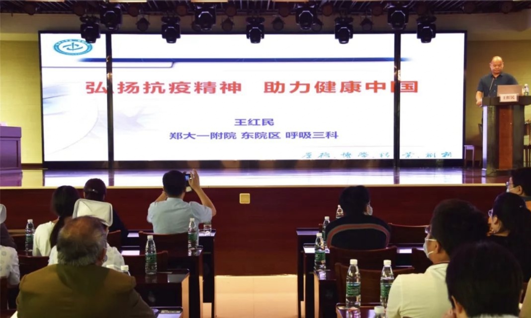王紅民教授曾經(jīng)參加河南省援鄂醫(yī)療隊,他給大家分享了在武漢第一家方艙醫(yī)院——江漢方艙醫(yī)院工作時的抗疫故事,當(dāng)王教授說起援鄂醫(yī)療隊“疫情不退,絕不言歸”的口號時,臺下響起雷鳴般的掌聲。