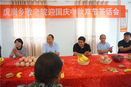 尊老、敬老、愛老是中華民族的傳統(tǒng)美德。9月28日,在國慶、中秋佳節(jié)來臨之際,鄲城縣虎崗鄉(xiāng)敬老院舉辦了迎國慶、中秋雙節(jié)茶話會(huì),豐富了老人們歡慶、團(tuán)圓的節(jié)日氛圍。虎崗鄉(xiāng)全體黨政班子成員參加了此次茶話會(huì)。