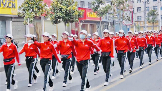 10月11日早晨,鄲城大街上迎來(lái)了一道靚麗的風(fēng)景線——他們身著鮮艷的紅色運(yùn)動(dòng)服,肩扛五星紅旗,手扯橫幅,隨著動(dòng)感十足的音樂(lè),昂首闊步徜徉在金色的秋天里……