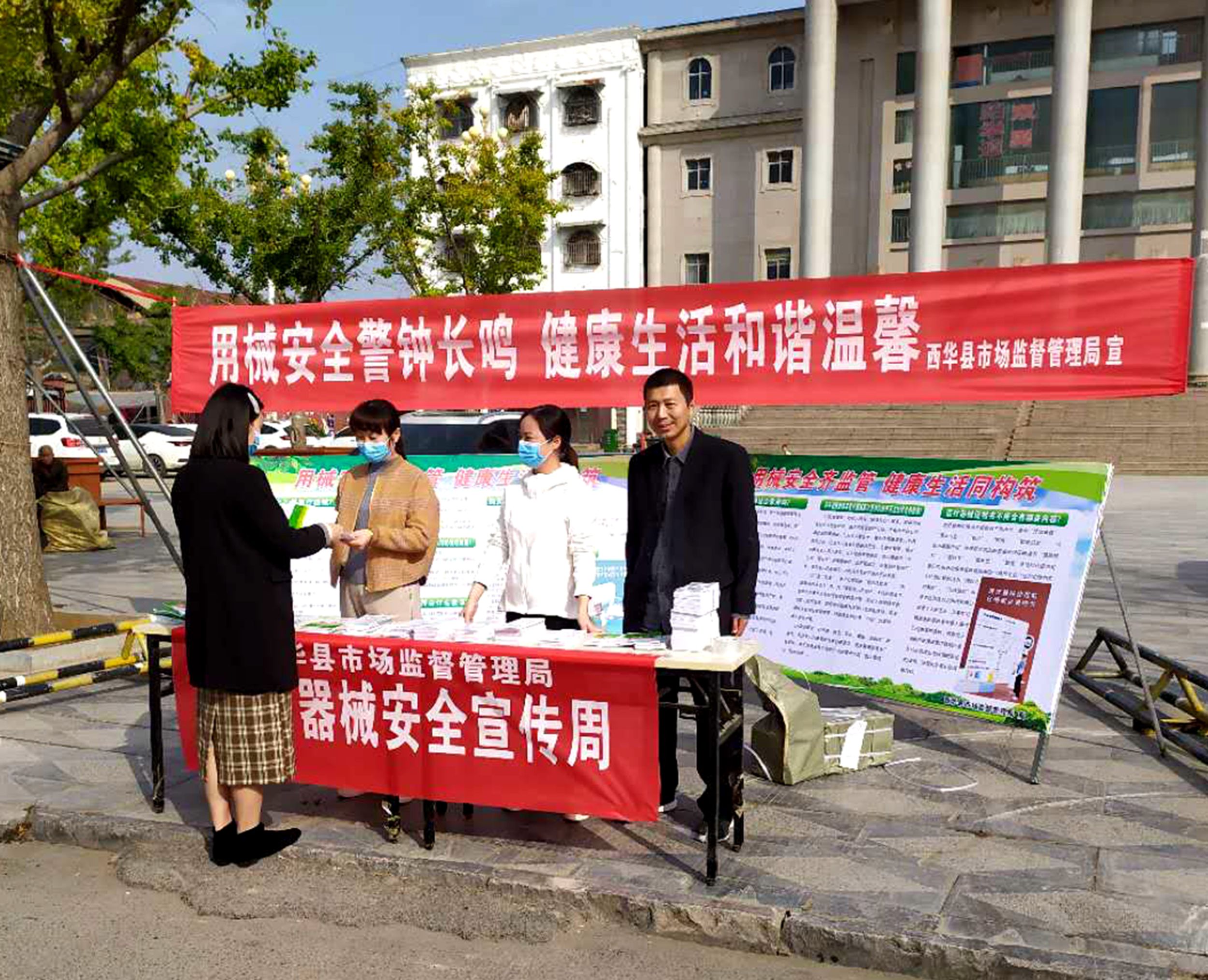 當(dāng)日,西華縣市場監(jiān)管局在縣城女媧廣場開展醫(yī)療器械安全宣傳周活動。工作人員一大早就來到宣傳活動現(xiàn)場,掛條幅、擺桌子、設(shè)展板,忙得不亦樂乎。