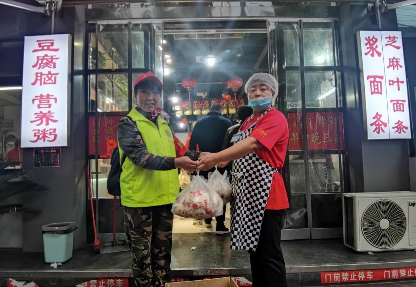 志愿者王新愛和顧連云得知愛心企業(yè)愿意提供早餐,他們早上6點(diǎn)就來到了馬丁餐廳五一路捐贈處取餐。隨后,把早餐陸續(xù)送到志愿者服務(wù)點(diǎn)。吃著美味的早餐,志愿者的心里暖暖的。