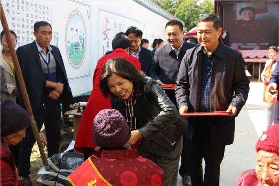 與此同時,在老冢鎮(zhèn)謝堂、中崗、李莊、劉屯西、敬老院等5個居村聯(lián)養(yǎng)點也同時開展了“飲宴敬老、歡度重陽”活動,邀請80歲以上的老黨員、老教師、老干部、參與“山果”扶貧助學行動鄉(xiāng)賢的父母、志愿者父母以及70歲以上的退伍老兵、特困人員參加。在活動現(xiàn)場,太康縣退役軍人事務局為70歲以上老兵發(fā)放棉衣200件,老冢鎮(zhèn)黨委政府為特困老人發(fā)放棉衣、棉帽271套,縣文聯(lián)帶來了道情戲,鎮(zhèn)衛(wèi)生院組織18名醫(yī)生開展了義診,老冢鎮(zhèn)志愿者聯(lián)合會組織60名志愿者到各個會場開展志愿服務……全鎮(zhèn)共計有1160位老人參加活動?!扒孙溩友纭背猿隽讼恪⒘粝铝饲?,營造了“敬老、愛老、助老”的文明新風尚。