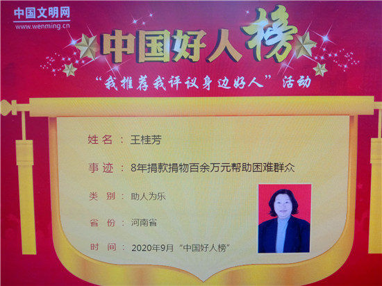 今年56歲的王桂芳,2005年10月告別打工生涯,東拼西湊了十萬(wàn)多元,成立了品種豬養(yǎng)殖場(chǎng)。經(jīng)過(guò)苦心經(jīng)營(yíng),目前,她的養(yǎng)殖場(chǎng)已發(fā)展成為占地80畝,存欄母豬300頭,生豬3000頭,年出欄6000頭的大型養(yǎng)殖合作社。受打工經(jīng)濟(jì)的影響,廣大農(nóng)村的一些孤寡老人、空巢老人常年無(wú)人照料,日常生活也總是饑一頓飽一頓的,王桂芳看在眼里,疼在心里。2019年1月,王桂芳在太康縣城郊鄉(xiāng)王東月村創(chuàng)辦了一所占地20余畝的村級(jí)聯(lián)養(yǎng)院。“本村村民的事,她關(guān)心,外村非親非故的村民有困難,桂芳也會(huì)伸手相助?!蓖鯑|月行政村黨支部書(shū)記王錦鄉(xiāng)說(shuō),“前天,俺鄉(xiāng)老墳洼村40多歲的徐華偉,妻子先天小兒麻痹癥,3個(gè)孩子中最大的12歲、最小的才7歲,因?yàn)橐疹櫰拮?,徐華偉無(wú)法外出務(wù)工,家里特別貧窮。王桂芳聽(tīng)說(shuō)后,立即給他送去2000塊錢(qián)。截至目前,王桂芳已累計(jì)為本村或臨鄉(xiāng)孤寡老人、貧困戶(hù)捐款捐物100多萬(wàn)元?!?/p>