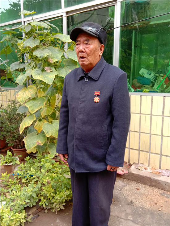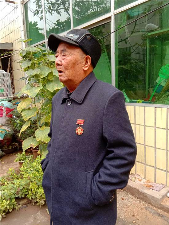 快到王景文家時,記者與他取得了聯(lián)系,沒想到他竟到路口來迎記者,看到他硬朗的身板和健康的身體,聽他說話聲音洪亮、底氣十足,記者還是很欣慰的,畢竟經(jīng)歷了70年的風(fēng)雨洗禮,還能行走自如、聲如洪鐘,的確是寶刀不老。被他迎進家,其老伴滿頭銀發(fā),喜瞇瞇地讓記者進屋,王老先生去里屋找出了一枚抗美援朝紀(jì)念章,并說抗美援朝和平紀(jì)念章等物品都放丟了,找不到了,有些遺憾。記者就開門見山地說要聽他講講參加抗美援朝的故事,他不好意思地笑了:“講不好,年齡大了,記性不好,有好多事都記不清了……”當(dāng)問起他老家是哪里時,王老先生還是打開了話匣子。1934年,他出生在淮陽縣劉振屯鄉(xiāng)耿樓大隊李樓村,由于家境貧寒,他從小就跟隨家人一路逃荒要飯來到了扶溝,但日子還是艱難,為了能活命,父母無奈把他送給了扶溝縣城一戶人家,從此他就成了這戶人家的孩子,并于1951年5月結(jié)婚??山Y(jié)婚沒幾個月,縣里就開始征兵了。當(dāng)兵離家,要丟下妻子,更何況妻子已有孕在身,他真舍不得;保家衛(wèi)國,是義務(wù)是責(zé)任是擔(dān)當(dāng),他責(zé)無旁貸。家與國,他毅然選擇去當(dāng)兵。與新婚燕爾的妻子依依惜別,他踏上了行軍的征程。那時可沒有車接送,去往目的地,全靠兩條腿,行軍與訓(xùn)練的苦與累難以想象。問他不害怕當(dāng)兵打仗嗎?他回答:“不怕!”語氣堅定而有力。生活的磨難讓他對安穩(wěn)的生活有一種渴望,他明白戰(zhàn)爭會讓國家陷入混亂不堪的局面,老百姓的生活會更加艱難,為了祖國的和平安寧和兄弟姐妹的幸福,他愿意去當(dāng)兵打仗。保家衛(wèi)國的種子早已種在了他的心里。